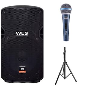 Kit composto de 01pç Caixa Acústica WLS S10 Ativa com Bluetooth + 01pç Microfone M58A + 01pç Pedestal ST002 1,80m