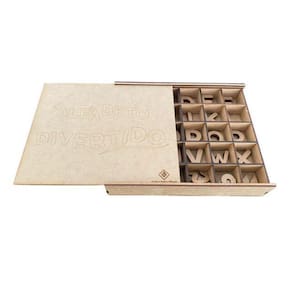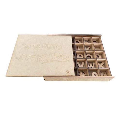 A Caixa Alfabeto Divertido é um produto desenvolvido em MDF Cru, que possui letras e caracteres para alfabetização de crianças a partir de 3 anos. A Caixa possui 5 unidades de cada vogal e 3 unidades de cada consoante do alfabeto. Uma atividade para auxiliar educadores e familiares no aprendizado das crianças.Uma ferramenta inclusiva, desenvolvida para auxiliar crianças, inclusive, com necessidades especiais.O Alfabeto Divertido é um material de apoio desenvolvido com orientação psicopedagógica e tem como objetivo contribuir com o desenvolvimento e o aprendizado de crianças, principalmente neste momento de pandemia, em que todos tivemos de nos adaptar para transformar a nossa casa, também, em um ambiente para estudos.A Caixa e as letras são feitas em MDF Cru como incentivo para que, com o uso de tinta guache ou qualquer tinta para MDF , todas as peças sejam pintadas pelas crianças, também como parte do aprendizado, deixando tudo mais divertido.Conteúdo:- 1 caixa de 26x22cm feita em MDF Cru a caixa possui tampa com a gravação 'Alfabeto Divertido' ;- 5 unidades de cada vogal;- 3 unidades de cada consoante;- Caracteres especiais: Pontos de exclamação , interrogação , vírgula , , ponto e vírgula ; , acento circunflexo ^ , til ~ , cedilha ç .