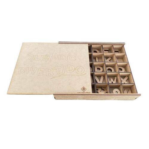 A Caixa Alfabeto Divertido é um produto desenvolvido em MDF Cru, que possui letras e caracteres para alfabetização de crianças a partir de 3 anos. A Caixa possui 5 unidades de cada vogal e 3 unidades de cada consoante do alfabeto. Uma atividade para auxiliar educadores e familiares no aprendizado das crianças. Uma ferramenta inclusiva, desenvolvida para auxiliar crianças, inclusive, com necessidades especiais.