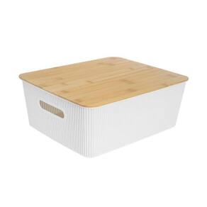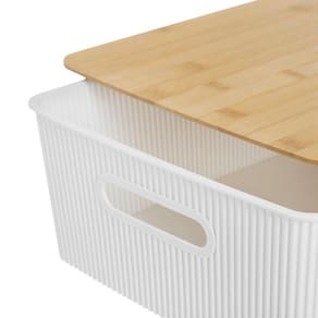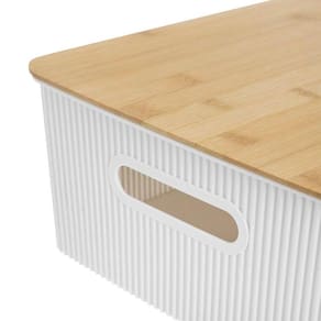 A Caixa Organizadora Bambu Lines tem 12 L e é produzida em plástico com tampa em bambu. Ideal para manter organizado itens variados. Sua versatilidade permite seu uso em armários ou estantes de ambientes, como escritórios, quartos e banheiros.