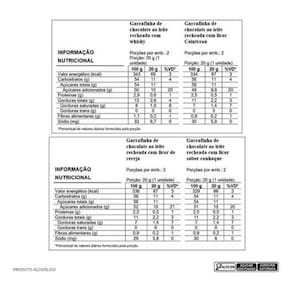 Tipo: Chocolate ao leite com recheios alcoólicos