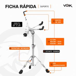 Suporte: • Marca: Voik • Modelo: SC-10 • Estante cromada • Estrutura Reforçada • Altura Mínima: 38 cm • Altura Máxima: 55 cm • Tamanho das Hastes: 20.5 cm • Ferragens das pernas dupla • Pés Emborrachados • Peso do produto: 1,855 Kg