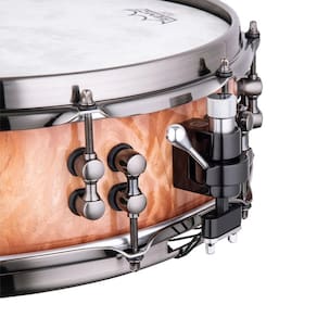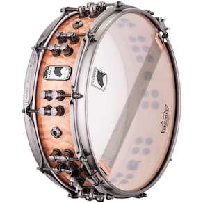 Série: Black Panther – Design LabTamanho: 14? x 4 ?”7 folhas, Maple/Mahogany (Mogno) de 8,55 mm4 orifícios de ventilação (quadrante)Borda superior 45° SONIClear, borda inferior 35° SONIClearAcabamento: SAS 2 Peach Burl BurstCanoa: Master TuneAros Sonic SaverPele ataque: Remo Fiberskyn DiplomatPele resposta: Remo Hazy