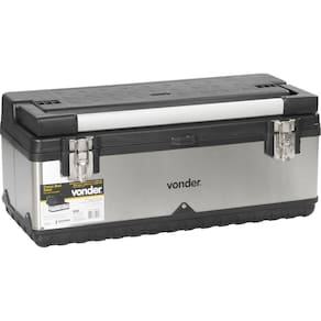 Confeccionada em aço inox, proporcionando excelente resistência à oxidação/corrosão. Possui bandeja interna, alça e 2 travas.