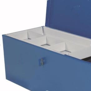 - Caixa Baú 02 FERCA é ideal para o armazenamento e transporte de ferramentas e componentes com segurança e praticidade; - Produzida em chapa de aço reforçado que proporciona maior resistência e durabilidade; - Com alça para transporte e tratamnto anti-ferrugem; - Pode ser utilizada para outros fins, tais como o armazenamento de itens de pesca e acessórios; - Possui porta cadeado e bandeja removivél.