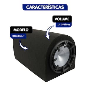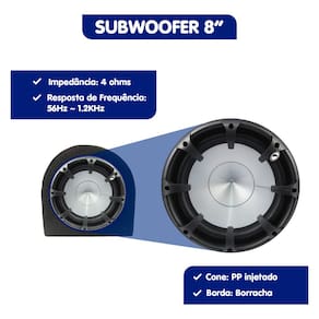 CONTEÚDO DA EMBALAGEM: - 1 Caixa Bazooka Amplificada Carpete Preto - 1 Subwoofer 8" 200W RMS Bobina 4 Ohms