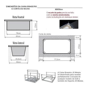 Caixa Braseiro de Embutir para Churrasqueira 80X50 Aço Inox Jx Metais