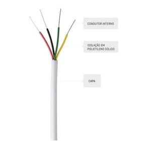 Caixa Cabo De Alarme 4 Vias 100 Metros Bitola 0,40mm Descrição Cabo 4 vias Multicores para alarme 100 mts Um cabo com excelente custo para instalação de sensores de presença, sensores magnéticos, sirenes, interfones e muito mais Isolado internamente em polietileno e externamente em PVC 70º, esse cabo possui ótima resistência e durabilidade. Perfeito para quem busca confiabilidade em maiores distâncias. 4 vias de 0,40 mm Condutor interno: Fio de Aluminio Recoberto com Banho de cobre, eletrolítico, mole Diâmetro do fio: 0,40mm Isolação Interna: Polietileno de baixa densidade multicor Isolação Externa: PVC 70º Anti-chama - Branco Embalagem: 01 Rolo com 100 metros Marca: New Line Cable