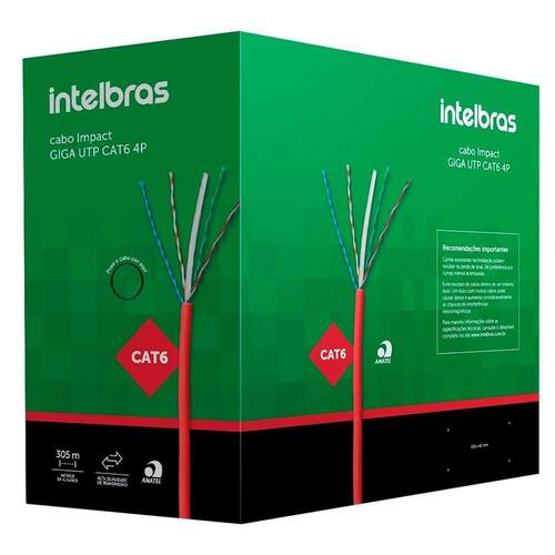Cabo utp cat6 4px23 awg cmx 305m impact giga - ig6cvm vermelho intelbras eleve a qualidade da sua rede com o cabo de rede cat6 utp impact giga da intelbras, projetado para oferecer máxima performance e estabilidade. Ideal para instalações de alta velocidade e aplicações que exigem grande largura de banda, esse cabo é uma escolha confiável para redes residenciais e corporativas. Principais características: