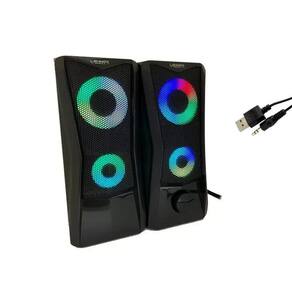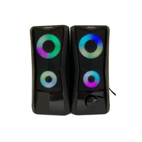 CAIXA DE SOM COM SEU DESIGN GAMER COM LEDS RGB DINÂMICO POSSUI 2 CAIXAS DE SOM, PROPORCIONANDO UM SOM DE ALTA QUALIDADE E BATIDAS OTIMIZADAS, AJUSTE DE VOLUME PARA MANTER O SEU ESTILO DE SOM AINDA MELHOR.