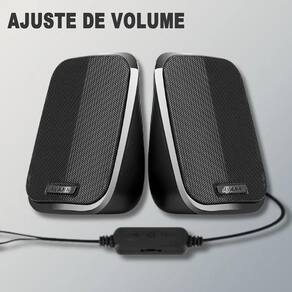Especificações - comprimento do cabo: 1 metro - saída total: rms 5w - relação: s/n: 65db isolado - sensibilidade 70db + 4db - recomendado para pc, mp3, mp4, notebook, etc... - timbre suave e claro - amplificador ativo integrado - qualidade de som pura e elegante com efeito insuperável - impedância: 4 ohms - potência: usb 5v - alimentação de energia via usb Marca: Não Informado Ean: 79097104273133
