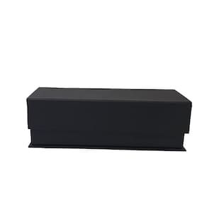 COR: Preta ESPECIFICAÇÕES TÉCNICAS - Formato 33x10x10 Com primento x largua x altura . Altura da aba 5 cm - Material: papelão rígido, 2 mm de espessura - Revestimento externo e interno: papel colorplus - Fino acabamento - Produto artesanal, feito à mão - Fabricação própria. Marca própria Desde 2001 - Garantia de qualidade