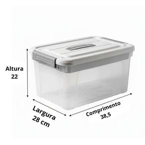 Caixa Cesto Organizador Multiuso Com Tampa 20 Litros Mantenha seus ambientes sempre bem organizados e visualmente agradáveis, uma solução prática, funcional e versátil para o armazenamento de diversos tipos de objetos. Ideal para guardar roupas, brinquedos, calçados, documentos, materiais escolares, acessórios de escritório, ferramentas leves ou qualquer outro item que precise de um espaço e acessível, ela é perfeita para otimizar o espaço em casa, no trabalho ou até mesmo em ambientes comerciais. Produzida em plástico resistente e de alta durabilidade, esta caixa conta com uma tampa branca equipada com uma alça embutida que facilita o manuseio, além de travas laterais firmes que garantem o fechamento adequado, impedindo que a tampa se solte durante o . Seu corpo transparente permite a visualização rápida e fácil do conteúdo interno sem a necessidade de abrir, tornando o dia a dia muito mais prático. Com design empilhável, ela economiza espaço e contribui para uma organização inteligente e eficiente Especificações: Dimensões: 22cm altura x 28cm largura x 38,5cm comprimento Composição: Plástico Capacidade: 20 Litros Cor: Transparente com Tampa Branca