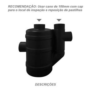 Possui diâmetro de entrada e saída de 100 mm, facilitando a conexão com sistemas de esgoto existentes. A Caixa Cloradora é projetada para oferecer uma performance superior no tratamento de águas residuais, contribuindo para a sustentabilidade do seu sistema de saneamento.