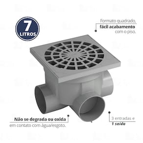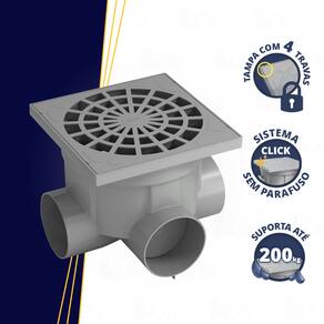 Principais Vantagens - Instalação prática e rápida - Tampa resistente até 200 kg - Totalmente estanque – evita vazamentos e infiltrações no solo - Alta durabilidade: não oxida e não se degrada em contato com água/esgoto - Compatível com prolongadores da marca (vendidos separadamente) - Fácil limpeza – remoção eficiente de folhas e detritos - Formato quadrado que facilita o acabamento com o piso - Fixação da grelha sem parafusos – mais agilidade e segurança