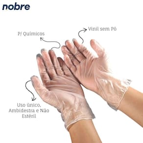 Validade: 5 anos a partir da fabricaçãoAs luvas de vinil descartáveis Nobre são ideais para atividades que exigem segurança contra agentes químicos leves em ambientes domésticos ou profissionais. Confeccionadas em vinil sem pó e livre de látex, oferecem maior conforto e reduzem riscos de alergias, além de serem ambidestras e descartáveis, garantindo higiene e praticidade no dia a dia.