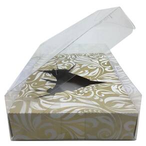 Apresentamos a novidade do Coração de Colher Para presentear quem você gosta de uma maneira especial. Utilizando o sistema fácil de abre e fecha, desenvolvemos nossa bela caixa para Coração de Colher, com suas cores diferenciadas e uma linda arte. Conteúdo: 25 Conjuntos de Caixa para Coração de Colher 500g Cada conjunto contém uma caixa de acetato e um berço Especificações: Cor da Tampa: Transparente Tamanho: 16 x 23 x 6,5 cm Comprimento X Largura X Altura Material da Caixa: Acetato 200 micras 0,20 Material do Berço: Papel Duplex Branco Cor do berço: Dourado Floral Berço Ajustável até 3cm As caixas seguem desmontadas. Dispensa uso de cola. Fácil montagem, apenas com dobras e encaixes. Produto Exclusivo. A Embala Cristal é uma empresa focada em desenvolvimento e produção de embalagens. Marca: Embala Cristal