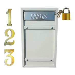 ******ACOMPANHA CADEADO DE CORTESIA********* Caixa correio chapa de aço 0.50mm, portão grade ou embutir em parede ou muro. Para grande quantidade de cartas encomendas e documentos em geral, essa é a sua solução! Pintura eletrostática. Cor branca moderna, que facilita a visibilidade na hora de entregar as suas correspondências. Caixa com profundidade em tamanho maior, COM TRINCO, PARA MANTÊ-LA FECHADA E ENTRADA PARA CADEADO ASSIM PODE, OBTER UMA MAIOR SEGURANÇA DE SUAS CORRESPONDÊNCIAS E DOCUMENTOS EM GERAL, evitando assim que a caixa fique aberta e suas correspondências e mercadorias se molhem ou caiam no chão, extraviem etc... Contém quatro parafusos e quatro porcas para maior estabilidade ao portão, sendo eles sem fenda, para garantir maior segurança ao seu produto a porta abre para o lado de dentro da residência. Largura: 23 cm Altura: 38,5 cm Profundidade: 15 cm