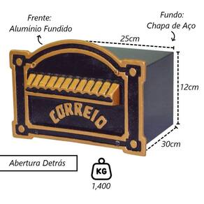 Caixa Correio Para Cartas Dallas Revista Detras 30x25x12cm A caixa de correio é usada para receber correspondências como cartas, contas e revistas, sendo colocada em frente a residências e empresas para garantir a entrega segura das correspondências. Sua função principal é oferecer um local seguro e conveniente para receber correspondências, protegendo-as do clima e de acesso não autorizado. Existem diversos tipos de caixas de correio, desde as individuais até as maiores para prédios, facilitando a distribuição das correspondências aos destinatários. Indicação de Uso: A caixa de correio é usada em residências, apartamentos, estabelecimentos comerciais, escritórios e instituições públicas para receber correspondências como cartas, pacotes e documentos. Ela serve como um local seguro e conveniente para coletar e armazenar temporariamente essas correspondências até que sejam retiradas pelo destinatário. Especificações Técnicas:Material Frente: Alumínio Fundido.Material Fundo: Chapa de Aço.Importante: Não entra água.Abertura por Detrás.Cor: Dourado. Medidas:Largura: 25cm.Peso: 1,400Kg.Altura: 12cm.Fundo: 30cm. Itens Inclusos:01 Caixa Correio Para Cartas Dallas Revista Detras 30x25x12cm. Código: 485MTMProdutoLojaPlast. Marca: Metal Mig