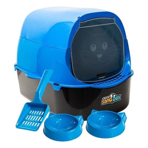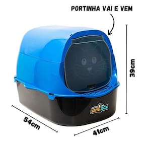 O Banheiro para Gatos Sandbox Jel Plast é a solução ideal para proporcionar conforto, higiene e praticidade aos seus adoráveis felinos. O Banheiro Fechado acompanha 1 Pazinha e 2 Comedouros Cara de Gato.