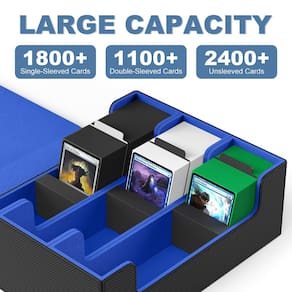 Mlikero Estojo para cartas, caixa de armazenamento de mais de 1800 cartões colecionáveis com 10 divisórias e 3 tampas de espuma, caixa de baralho Commander com fecho magnético de couro, adequada para - ?Organização eficiente de cartões?A caixa de armazenamento de cartões colecionáveis vem com 10 divisórias de cartão e 3 tampas de espuma, ajudando você a organizar seus cartões perfeitamente. O design robusto de fecho magnético garante que a caixa do baralho permaneça firmemente fechada, mesmo quando virada, garantindo a segurança de seus cartões sem nenhum dano. - ?Grande capacidade?Medindo 29 x 25 x 10,7 cm, a caixa de cartão acomoda facilmente mais de 1800 cartões com capa, mais de 1100 cartões de manga dupla e mais de 2400 cartões sem manga, atendendo a todas as suas necessidades de armazenamento de cartões. - ?Durabilidade superior?Feita de materiais de alta qualidade, nossa caixa de baralho TCG possui um exterior à prova d'água e um forro de microfibra macio, oferecendo proteção abrangente para seus cartões contra arranhões, vincos e outros danos. O material externo resistente e durável melhora a sensação tátil e a aparência elegante da caixa de cartões colecionáveis, garantindo proteção perfeita para todos os seus cartões. - ?Caixa de armazenamento de cartões versátil?Habilmente projetada para jogadores de cartas, nossa caixa de armazenamento de cartões é adequada para uma ampla variedade de cartões colecionáveis. É compatível com MTG, PKM, TCG, bem como cartões de futebol e beisebol, mantendo sua coleção organizada e aprimorando sua experiência de jogo - ?Presente perfeito para colecionadores de cartões? Lutando para manter seus cartões organizados? Esta caixa de baralho Commander é a melhor solução, mantendo sua coleção limpa enquanto faz um presente atencioso para amigos e familiares que amam colecionar e jogar. - ?Observação?Não é adequado para protetores de cartão de plástico rígido e suporte de cartão magnético.