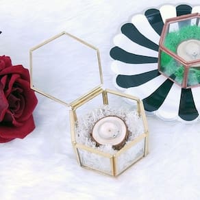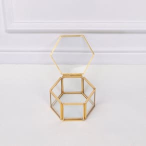 Características destacadas 1. Estilo moderno requintado: Esta caixa de jóias é uma vitrine de vidro hexagonal com uma aparência elegante, e o estilo é muito moderno e requintado. 2. Prático: esta caixa de armazenamento pode armazenar suas joias, joias, anéis, brincos, colares, flores, etc. 3. Boa qualidade: a borda desta caixa de joias é feita de latão e é perfeitamente soldada com vidro transparente. A qualidade é muito boa. 4. Portabilidade: Este produto é pequeno e leve, o que é muito conveniente de transportar. 5. Lindo: este produto é feito com artesanato funcional e requintado, e a aparência é muito elegante e bonita. Veja menos