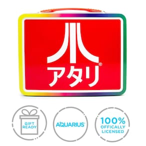AQUARIUS Atari Fun Box - Caixa de armazenamento de lata resistente com alça de plástico e capa frontal em relevo - Mercadoria Atari oficialmente licenciada e presente colecionável