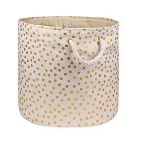 DII Caixa de armazenamento de poliéster, coleção metálica dourada dobrável com alças, grande redondo, off-white natural