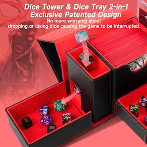 - Dice Tray & Tower 2 em 1: a caixa de baralho MTG combina as funções de uma bandeja de dados e uma torre de dados em uma; este é um design exclusivo e patenteado, e nosso objetivo é melhorar a experiência de jogo para todos os jogadores EDH do MTG Commander; não se preocupe mais com os dados rolando e caindo da mesa, o que pode causar interrupções no jogo, e desfrute de um confronto completo