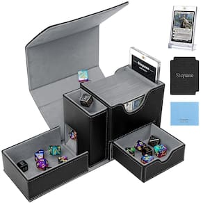 - Grande capacidade: a caixa de baralho Stepane MTG foi testada com uma variedade de capas populares no mercado e pode conter até 100 cartas de capa dupla ou 120 cartas de capa única; a bandeja de dados comporta até 60 dados (14 mm); garantindo que todos os itens essenciais do jogo estejam bem organizados e de fácil acesso