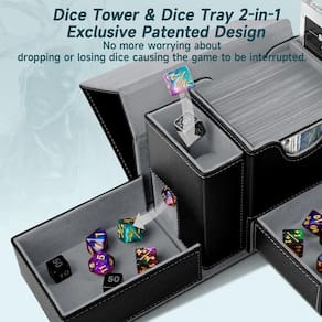 - Dice Tray & Tower 2 em 1: a caixa de baralho MTG combina as funções de uma bandeja de dados e uma torre de dados em uma; este é um design exclusivo e patenteado, e nosso objetivo é melhorar a experiência de jogo para todos os jogadores EDH do MTG Commander; não se preocupe mais com os dados rolando e caindo da mesa, o que pode causar interrupções no jogo, e desfrute de um confronto completo