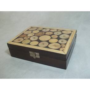 Caixa de baralho envernizada com podas de arvore Produto feito com madeira.