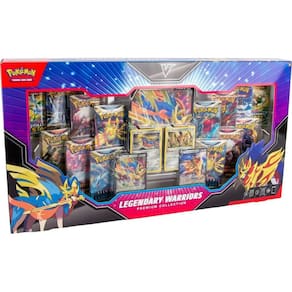 14 pacotes booster Pokemon TCG de Espada e Escudo 4 cartas metálicas com Zacian e Zamazenta 1 carta grande com Zacian V - 14 boosters Pokemon TCG da Sword & Shield - 4 cartas metálicas com Zacian e Zamazenta - 1 cartão de alumínio grande com Zacian V