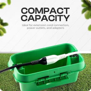 Uma caixa de plástico durável, carro com patenteada vedações para manter fora a umidade e poeira de temporária conexões elétricas. Pode armazenar picos protetores e tiras de energia (e molinetes de extensão no tamanho maior) para ligar as ligações de equipamento como fontes, bombas, temporizadores, transformadores, etc. A caixa de sockit é simples de usar, rápido de configurar, leve, e pode ser utilizado para aplicações internas e externas.