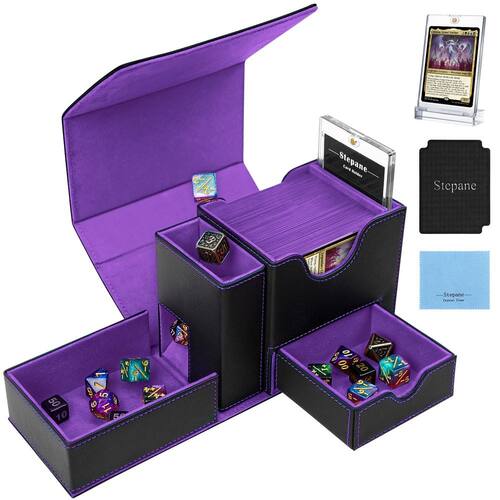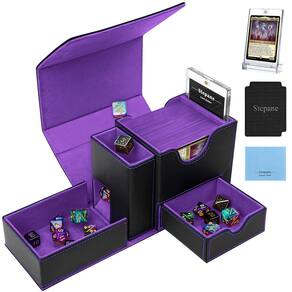 - Grande capacidade: a caixa de baralho Stepane MTG foi testada com uma variedade de capas populares no mercado e pode conter até 100 cartas de capa dupla ou 120 cartas de capa única; a bandeja de dados comporta até 60 dados (14 mm); garantindo que todos os itens essenciais do jogo estejam bem organizados e de fácil acesso