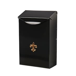 tamanho da abertura para entrada de correspondência é de 6" L x 2,13" H - Equipamento de montagem vendido separadamente - Inclui um emblema decorativo em flor de lis - Parede guia de modelo de montagem incluído para posicionamento preciso