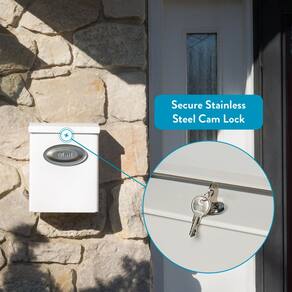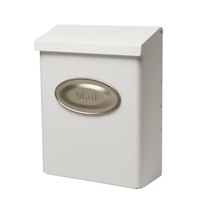 Architectural Mailboxes Designer de aço galvanizado, caixa de correio com trava de parede, branco com níquel acetinado