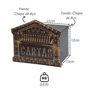 Indicação de Uso: A caixa de correio é usada em residências, apartamentos, estabelecimentos comerciais, escritórios e instituições públicas para receber correspondências como cartas, pacotes e documentos. Ela serve como um local seguro e conveniente para coletar e armazenar temporariamente essas correspondências até que sejam retiradas pelo destinatário.