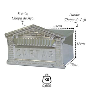 Caixa de Correio Cartas Tijolinho Inox Embutir 15x21x12cm A caixa de correio é usada para receber correspondências como cartas, contas e revistas, sendo colocada em frente a residências e empresas para garantir a entrega segura das correspondências. Sua função principal é oferecer um local seguro e conveniente para receber correspondências, protegendo-as do clima e de acesso não autorizado. Existem diversos tipos de caixas de correio, desde as individuais até as maiores para prédios, facilitando a distribuição das correspondências aos destinatários. Indicação de Uso: A caixa de correio é usada em residências, apartamentos, estabelecimentos comerciais, escritórios e instituições públicas para receber correspondências como cartas, pacotes e documentos. Ela serve como um local seguro e conveniente para coletar e armazenar temporariamente essas correspondências até que sejam retiradas pelo destinatário. Especificações Técnicas:Material Fundo: Chapa Aço Inox.Material Frente: Chapa de Aço.Importante: Não entra água.Abertura por Detrás.Cor: Prata Inox. Medidas:Largura: 21cm.Peso: 0,600Kg.Altura: 12cm.Fundo: 15cm. Itens Inclusos:01 Caixa de Correio Cartas Tijolinho Inox Embutir 15x21x12cm. Código: 2132MTMProdutoLojaPlast. Marca: Metal Mig