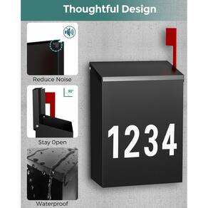 ALTA QUALIDADE E DURÁVEL: A caixa de correio de montagem na parede é feita de aço galvanizado forte, usará para uma longa vida útil; o acabamento pintado é um revestimento especial em pó externo para resistência ao clima - Atualização de tamanho: não gosta de caixas de correio grandes, esta nova caixa de correio otimiza o tamanho. Pode atender às necessidades diárias. Caixa de correio comporta várias cartas, revistas, jornais. - Alta qualidade e durável: a caixa de correio de montagem na parede é feita de aço galvanizado forte, usará para uma longa vida útil; o acabamento pintado é um revestimento especial em pó externo para resistência ao clima. - DESIGN HUMANIZADO: O design inclinado do beiral do telhado pode deixar rapidamente a água da chuva e não é fácil de recolher; a almofada de EVA preta na tampa pode efetivamente reduzir o ruído quando a tampa está fechada; e o espaçador de nylon preto entre a parede e a caixa de correio para evitar arranhar a parede - DESIGN HUMANIZADO DOIS: Quer tirá-los com uma mão? Basta usar uma chave de fenda para apertar ligeiramente os parafusos na tampa, então a tampa não fechará imediatamente quando aberta. - Presentes de ótimo valor: inclui 3 conjuntos de números de caixa de correio de vinil reflexivos e 2 laços de zíper para cerca. - FÁCIL DE MONTAR: Vem com parafusos, âncoras de plástico e espaçador de nylon, para que a caixa de correio possa ser colocada sem qualquer incômodo, os laços de zíper também podem fornecer outra opção de instalação. Tamanho: 7,1"L(18cm)*3.9"D(10cm) *10.24"H(26cm)
