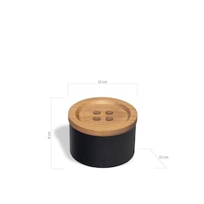 Estilosa, no formato de botão, essa caixa organiza os acessórios de costura e dá personalidade ao ambiente. Tenha agulhas, linhas e tesoura, sempre à mão, para aqueles imprevistos. Produto de aço, sem divisórias internas e com a tampa de madeira com suas variações de tonalidades e veios que possuem uma identidade única. A madeira utilizada é certificada de reflorestamento. Produto fabricado no Brasil. A Coleção Beauty é inspirada nas mulheres apaixonadas por acessórios, que curtem moda e beleza, arrasam no look e são uma inspiração para outras mulheres. Sugestão de presente para quem ama costurar. Os acessórios de costura não acompanham o produto. Conteúdo da Embalagem: 1 caixa. Cor: preto fosco, nogueira. As cores e acabamento do produto podem sofrer variação de acordo com a configuração da sua tela. Altura: 9cm Largura: 15cm Profundidade: 15cm Composição/Material: chapa de aço, pintura epóxi, madeira pinus certificada. Produto fabricado com madeira natural, pode apresentar diversidade de cor, textura e nós próprios da árvore que é extraída. Embalagem: plástico termo encolhível. Dicas de Uso: Produto indicado para áreas internas, evitar ter contato direto com água. Instruções de Conservação: limpar com pano levemente umedecido, não utilizar solventes e abrasivos. Marca: Não Informado