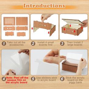 Observação: A placa de acrílico é transparente, mas tem uma película opaca para evitar arranhões durante o transporte. Você precisa remover esta película, conforme mostrado no passo 4 da imagem de instruções - ?Desafio de economia de 10.000?Ajuda você a economizar despesas desnecessárias e desenvolver um bom hábito de economizar dinheiro. Os números são impressos no painel, permitindo que você marque a quantidade que você economiza cada vez. O desafio de economia de 10.000 gosta de um jogo. Quando você vir mais e mais números marcados, você se sentirá cada vez mais realizado. Quando você economiza 10k, você passa o jogo - ?Reutilizável?Equipado com uma placa de acrílico colável. Depois de economizar 10.000, você pode apagar os números marcados. E reutilize-os - ?Durável e bonito?Feito de buxo. Resistente e durável. Moderno e bonito, adequado para quarto, sala de estar, dormitório ou decoração de estudo - ?Fácil instalação?Para garantir o transporte seguro, a caixa de economia de dinheiro é desmontada. A embalagem vem com instruções e a montagem é fácil - ?Tamanho?O cofrinho mede 19,8 x 14,5 x 7 cm, capaz de armazenar 10.000 dólares em moedas ou notas