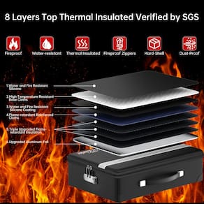 A caixa de documentos JHSafer à prova de fogo e resistente à água é leve e fácil de transportar enquanto ainda fornece proteção. A cor preta e o design rígido o tornam esteticamente agradável, robusto e seguro, combinando bem com qualquer escritório, oficina (especialmente aqueles que envolvem equipamentos de soldagem), quadra ou casa. Oferece tranquilidade contra possíveis danos causados por incêndio e água. Há um zíper de metal com trava, que serve mais como um recurso resistente à violação para manter as crianças fora. Também é surpreendentemente espaçoso, permitindo fácil organização de vários itens. É bom levar com você se você tiver que sair de casa em uma emergência ou ao viajar, e manter seus papéis importantes, fotos, passaportes, dinheiro, documentos, um laptop e um dispositivo de jogo portátil com você. Além disso, você pode usar esta capa como uma mesa de colo durante a viagem e não se preocupar com derramamentos de você ou de outras pessoas em áreas lotadas, como praças de alimentação ou restaurantes. No geral, a caixa da JHSafer oferece funcionalidade e durabilidade, tornando-a uma excelente escolha para quem procura proteger seus pertences importantes. - Material à prova de fogo e impermeável: nossas caixas à prova de fogo consistem em 8 camadas de isolamento de alta qualidade, zíperes à prova de fogo e fios à prova de fogo, e são certificadas pela SGS UL-94 VTM-0, que efetivamente protege seus pertences da carbonização em caso de incêndio - Design portátil e rígido: seu design rígido parece robusto e seguro, proporcionando tranquilidade contra possíveis danos causados por incêndio e água. Possui uma alça de transporte de metal confortável, tornando-a mais portátil do que os cofres tradicionais, para que você possa pegar e ir em caso de emergência - Grande capacidade: Tamanho externo: 42 x 32 x 13 cm, Tamanho interno: 38 x 28 x 12,7 cm. Além de fotos, papéis, passaportes, dinheiro e documentos, o compartimento principal é realmente grande o suficiente para armazenar vários itens volumosos adicionais, como uma coleção de relógios, joias ou outras lembranças - Design de trava de combinação de segurança: nossa caixa de documentos à prova de fogo está equipada com uma trava de senha que oferece proteção para seus documentos, incluindo contratos, cartões, certificados, materiais de reunião, laptops e passaportes. Combina bem com qualquer configuração de escritório, quadra ou casa e é perfeito para um oficial ou supervisor de construção trabalhando dentro e fora de seu veículo - Suporte ao cliente: Para sua conveniência, se você tiver alguma dúvida ou preocupação de qualidade, sinta-se à vontade para entrar em contato conosco e nos esforçaremos para resolver seu problema de forma rápida e eficaz