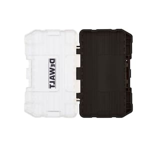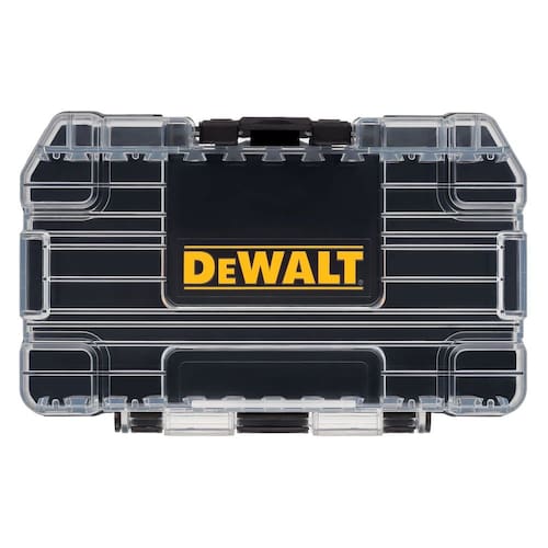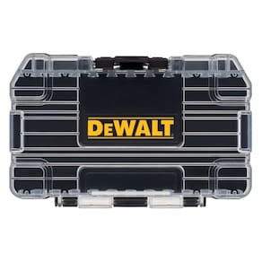 DEWALT Caixa de ferramentas ToughCase, para peças pequenas, 1 organizador de compartimento, trava de clipe para fechamento seguro (DWASTCASEBLK) - Sistema de armazenamento de acessórios conectável para otimizar o espaço de armazenamento - A tampa transparente permite que você veja facilmente o conteúdo de relance - Trava com clipe para fechamento seguro
