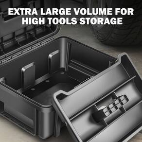 Caixa de ferramentas DNA MOTORING Caixa de ferramentas organizadora com trava e bandeja removível para oficina, garagem e casa, grande capacidade, TOOLS-00309 - Tamanho da caixa de ferramentas – 43,9 cm C x 32,8 cm L x 21,6 cm A. Dimensões externas gerais. Esta caixa de ferramentas de armazenamento portátil e de tamanho pequeno pode ser usada para bancada de trabalho, garagem e porta-malas de carro. - Amplo espaço de armazenamento – a bandeja de utilidade interna removível permite que você armazene chaves, soquetes, chaves de fenda e assim por diante. Compartimentos inferiores de volume extra grande podem armazenar itens grandes e pesados. - Design de fivela de trava dupla – A caixa de armazenamento de ferramentas com trava vem com 2 travas de aço inoxidável, não é fácil de deformar, o orifício do cadeado pode ser travado para garantir a segurança. - Durável e portátil – O organizador da caixa de ferramentas é feito de plástico rígido robusto de alta qualidade. Com alça antiderrapante inserida para facilitar o transporte; alça bi-material embutida para portabilidade fácil e estável. - Amplas aplicações – Esta caixa de ferramentas multiuso também é perfeita para uso doméstico, trabalho DIY, artesanato e armazenamento de hobby, que é leve para carregar.