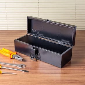 Conteúdo da embalagem1 Caixa metálica para ferramentasAplicações e dicas de usoIndicada para acondicionamento de ferramentas e afins, para uso leveDestaques e diferenciaisProduzida em estrutura em chapa de aço 1010/1020 e pintura a pó. Possui alça e trava simples com porta cadeado.DETALHES TÉCNICOSComprimento da caixa metálica:350,0 mmLargura da caixa metálica:120,0 mmAltura da caixa metálica:100,0 mmMaterial da caixa metálica:Chapa de açoCor da caixa metálica:PretaCapacidade de carga:8 kg Ean: 7893946177362