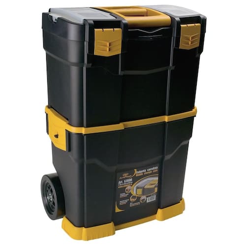 Este organizador de hardware é feito de 100% PP (polipropileno), tornando-o resistente, durável e fácil de limpar. Inclui dois organizadores superiores e um organizador removível adequado para guardar ferramentas manuais menores, parafusos, porcas e pregos. As capas transparentes permitem uma visão geral direta do conteúdo. Graças ao seu design empilhável avançado, você pode empilhar as caixas de ferramentas para economizar espaço quando não estiverem em uso e separá-las para uma boa portabilidade. Enquanto isso, tanto o baú inferior quanto a caixa superior são fixados com uma alça confortável, portanto, podem ser utilizados separadamente. A alça removível e os rodízios rolantes prometem o transporte seguro das ferramentas. Além disso, a caixa de ferramentas pode ser trancada com um cadeado (não incluído) para impedir o acesso não autorizado