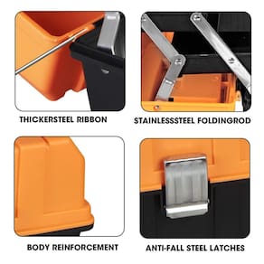 Caixa de ferramentas de plástico Torin de 17 polegadas, organizador de caixas de ferramentas portátil de armazenamento multifuncional de 3 camadas, preto/laranja ATRJH-3430T - As travas de metal resistente são sólidas e fáceis de abrir e fechar, com longa vida útil - A bandeja dobrável de três camadas oferece mais espaço de armazenamento e você pode separar ferramentas métricas e imperiais para transportá-las rapidamente - A caixa é feita de materiais espessos, incluindo corpo e hastes dobráveis, tornando nossa caixa resistente e durável - Capa com tampa de plástico transparente para peças pequenas - a caixa de 17 polegadas é adequada para uso doméstico, escritório ou armazenamento para algumas mãos ferramentas; inclui uma garantia limitada do fabricante de 1 ano
