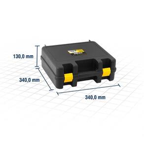 DETALHES TÉCNICOS Comprimento: 34,0 cm Largura: 34,0 cm Altura: 13,0 cm Material: Polipropileno Capacidade de carga (kgf): 12,0 kgf Cor da caixa: Preta e amarela Modelo: VD 6002 Massa aproximada (peso): 0,65 kg Observação: Não acompanha ferramentas