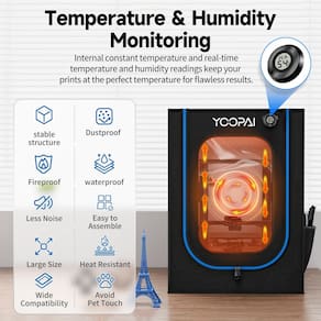 Gabinete para impressora 3D YOOPAI com kit de ventilação, luz LED, termo-higrômetro, à prova de fogo e poeira, para temperatura constante.Vendido e entregue por nocnoc